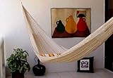 Caribe Mayan #3 Hammock - Ecru - The #3 Mayan hammocks are personal sized Mexican hammocks that are sprang-woven Nylon-string produced in Merida in Mexico's Yucatan Peninsula. Woven with colorful nylon string, the classic Mayan hammock or hamaca is a light weight, colorful, airy and designed for crossways use. As the basic string material is factory produced, the fabrication work on these Mexican hammocks is simplified and the resulting product is quite economical and well suited to a variety of uses. These hammocks are without