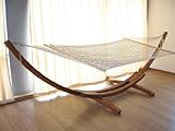 Cypress Solid Wooden Arc Hammock Stand with Cotton Double Wide Hammock - Enrich your outdoor decor with this arc hammock stand. Incredible piece of furniture is inspired by a Viking boat design. Innovative design and durable stand is made of 100-percent high-grade wood. Extremely durable hardwood species is known for its long-lasting beauty durability and extra strength.