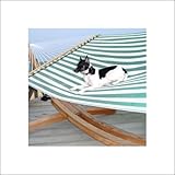 Green and White Stripe by Captain's Line - The perfect poolside fabric, and unbeatable in wet climates. Textilene, a vinyl-coated woven polyester material, does not absorb ANY water; droplets simply bead up on it, and can be easily brushed or shaken right off. Textilene is therefore remarkably resistant to rot, mold, and mildew. In fact, it may just be the strongest outdoor fabric available, difficult to tear or puncture, and also remarkably colorfast. Hammock is combined with hardwood spreaders and necessary hardware. Dimensions: 55" x