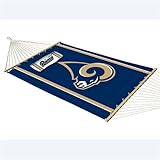 St Louis Rams Hammock - Spend a lazy afternoon dreaming of your favorite team's next championship season. Large oversized hammock supplies a generous 55" width, along with 82" length for more than adequate comfort. Overall length of 13ft. fits most hammock stands. Made from Oxford polyester guaranteeing years of outdoor use. Pillow included.